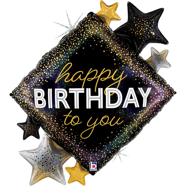 38 inch Happy Birthday To You Glitter Holographic Shape Balloon Packaged