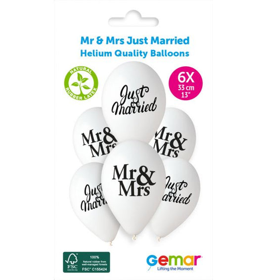 Gemar 13" Mr & Mrs Just Married Pastel #758-759 GS120 6pcs Round Balloon