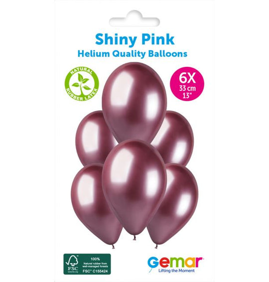 Gemar 13" Shiny Pink #091 GB120 6pcs Round Balloon