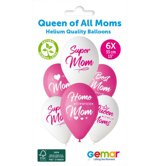 Gemar 13" Queen Of All Moms #1239-1240-1241-1242-1243 GS120 6pcs Round Balloon