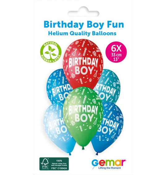 Gemar 13" #478 Birthday Boy Fun GS120 6pcs Round Balloon