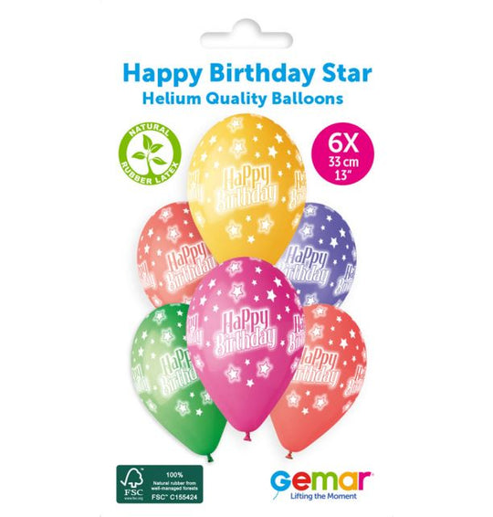 Gemar 13" Happy Birthday Star #11713" GS120 6pcs Round Balloon