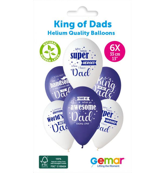 Gemar 13" King Of All Dads #1234-1235-1236-1237-1238 GS120 6pcs Round Balloon