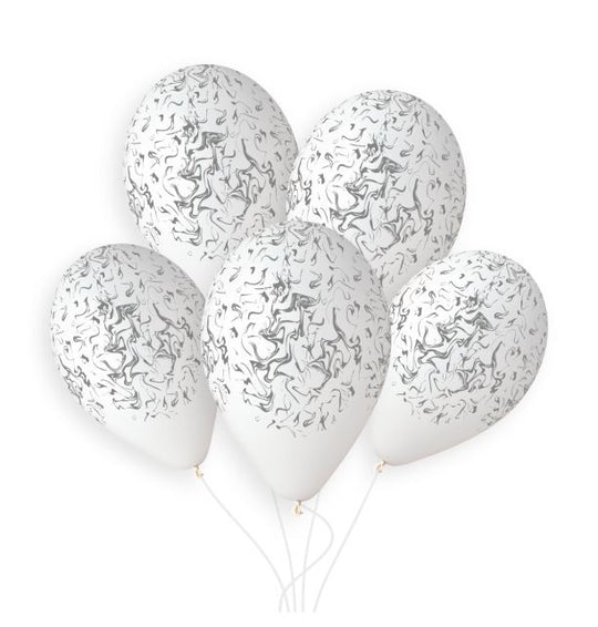 Gemar 13" White / Silver Marble #1255 GS120 50pcs Round Balloon