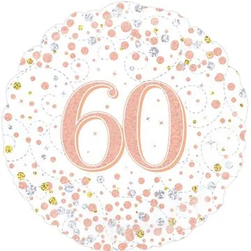Oaktree 18inch 60th Sparkling Fizz Birthday White & Rose Gold Holographic