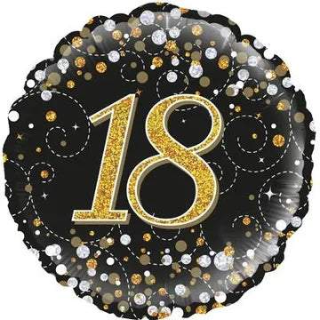Oaktree 18inch 18th Sparkling Fizz Birthday Black & Gold Holographic