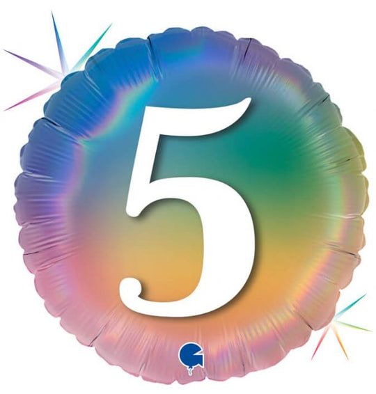 18" Happy 5 Colourful Rainbow Foil Balloon Packaged