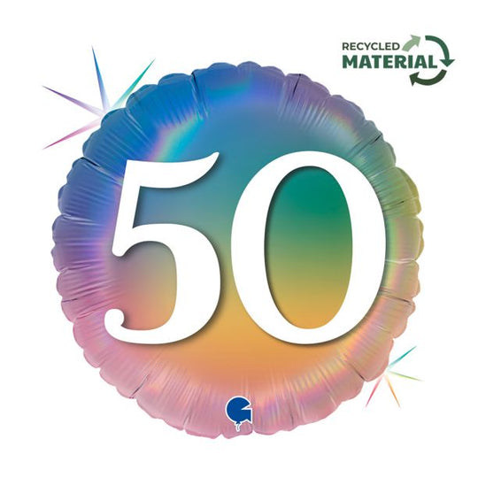 18" Happy 50 Colourful Rainbow Foil Balloon Packaged