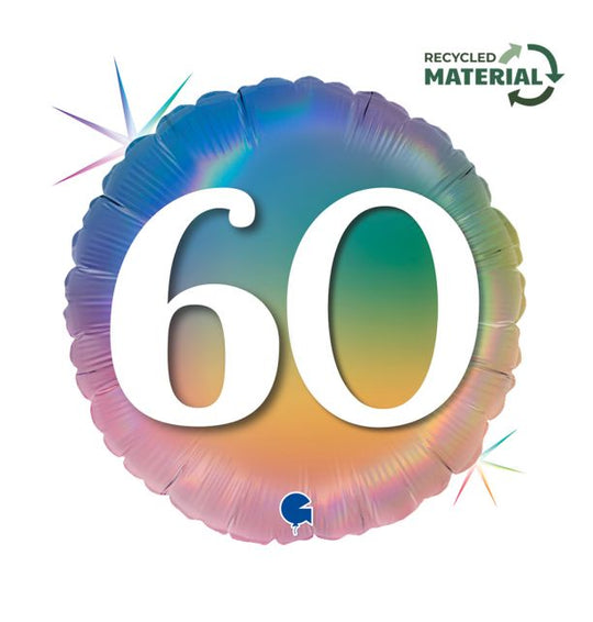 18" Happy 60 Colourful Rainbow Foil Balloon Packaged