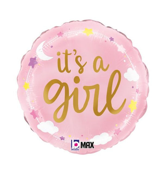 18" It's A Girl Stars & Clouds Foil Balloon Packaged