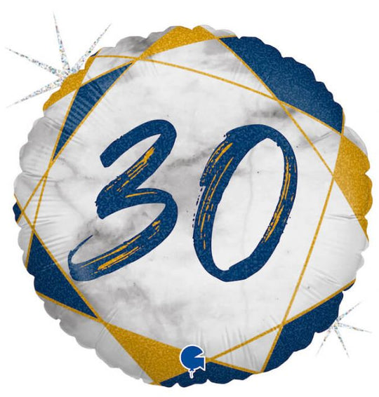18" Marble Mate 30 Blue Foil Balloon Packaged