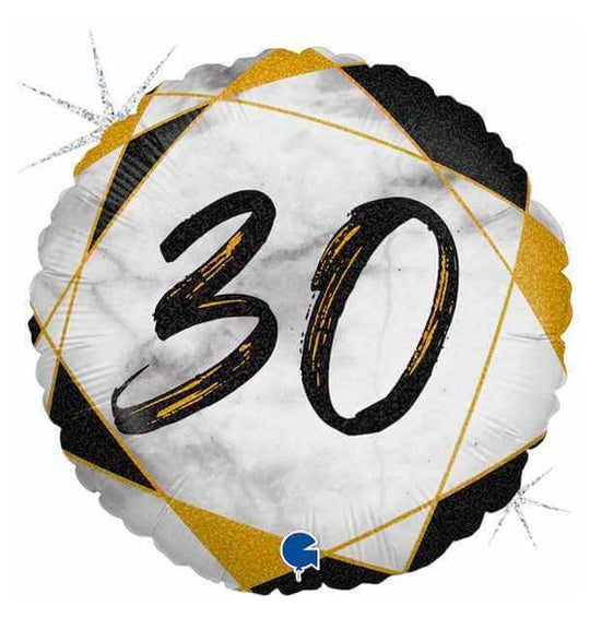18" Marble Mate 30 Black Foil Balloon Packaged