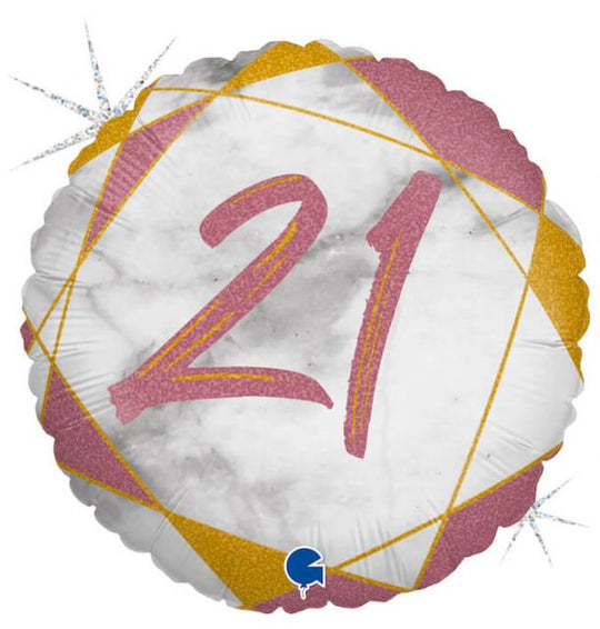 18" Marble Mate 21 Rose Gold Foil Balloon Packaged