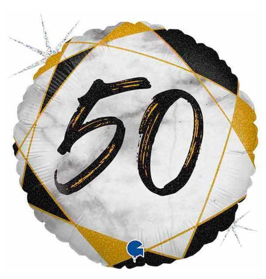 18" Marble Mate 50 Black Foil Balloon Packaged