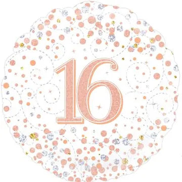 Oaktree 18inch 16th Sparkling Fizz Birthday White & Rose Gold Holographic
