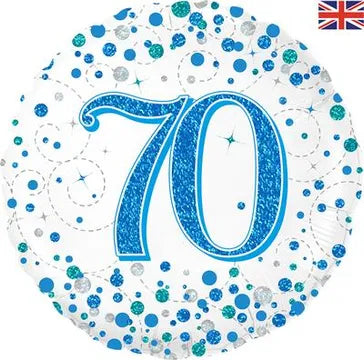 Oaktree 18inch 70th Sparkling Fizz Birthday Blue Holographic