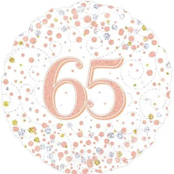 Oaktree 18inch 65th Sparkling Fizz Birthday White & Rose Gold Holographic