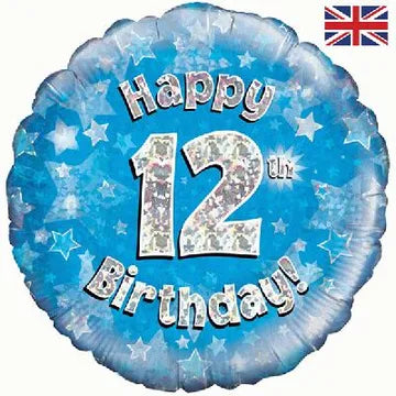 Oaktree 18inch Happy 12th Birthday Blue Holographic