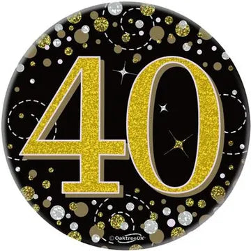 Oaktree 3inch Badge 40th Birthday Sparkling Fizz Black Gold Holographic