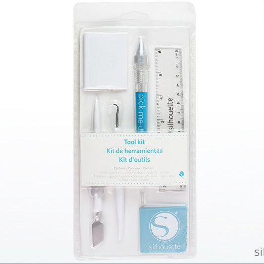 This tool set comes with a hook tool for weeding vinyl and heat transfer materials, a scraper tool for scraping your mat or applying vinyl onto project surfaces, a spatula to help lift delicate cut-out pieces from the cutting mat, a pick-me-up® tool for picking up and placing small items, a 6 inch clear ruler, and microfiber cloth to clean your machine's LCD screen.
