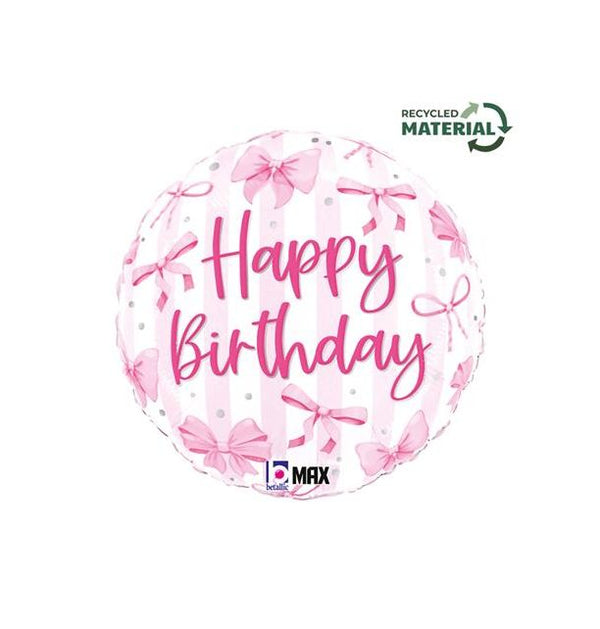 18" Pretty Pink Bow Birthday Foil Balloon Packaged