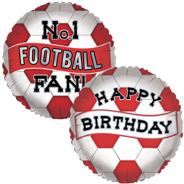 18 inch Birthday No.1 Football Fan Red White Foil Balloon Packaged