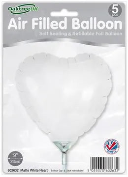 Oaktree 9inch Matte White Heart Packaged x 5pcs