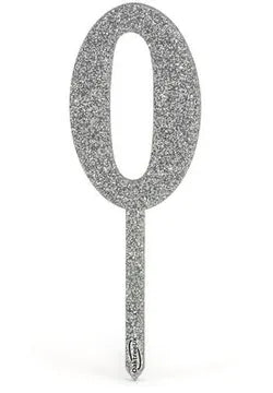 Oaktree Acrylic Silver Glitter Cake Topper No.0 H150mm x W48mm