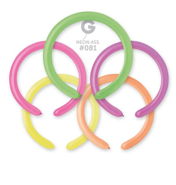 Gemar 2" Neon Assorted #081 D4 100pcs Modelling Balloons