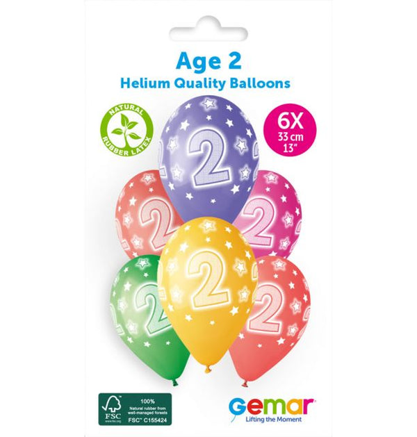 Gemar 13" Cosmic Stars Age 2 #847 GS120 6pcs Round Balloon