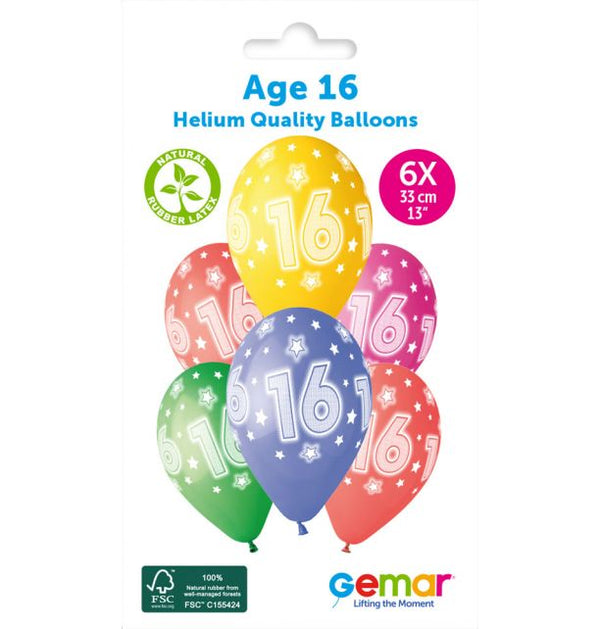 Gemar 13" Cosmic Stars Age 16 #875 GS120 6pcs Round Balloon