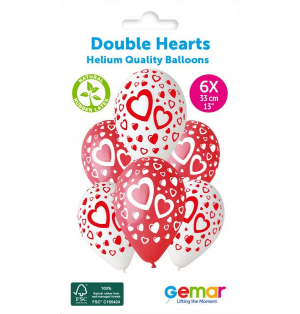 Gemar 13" Double Hearts #086 GS120 6pcs Round Balloon