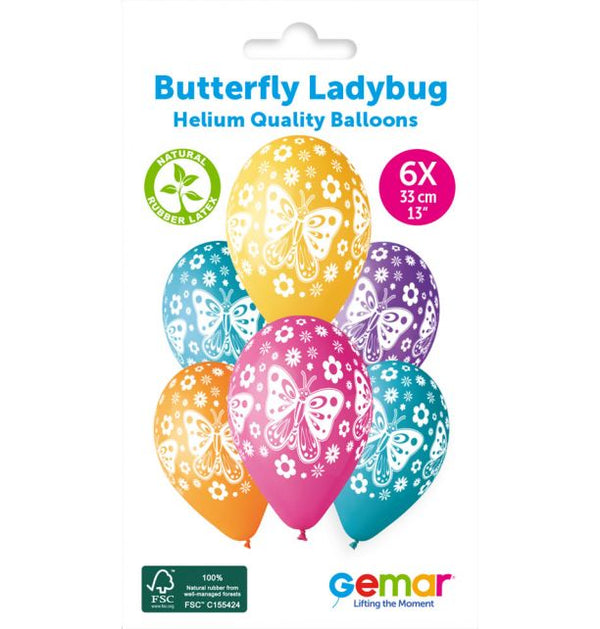 Gemar 13" Butterfly & Ladybug #355 GS120 6pcs Round Balloon