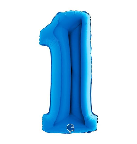 Number 1 Blue 40" Foil Balloon Packaged