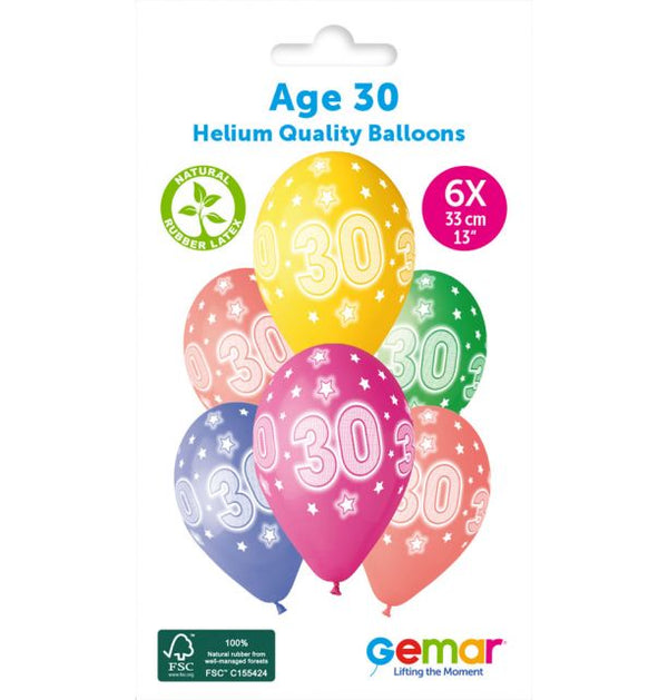 Gemar 13" Cosmic Stars Age 30 #869 GS120 6pcs Round Balloon