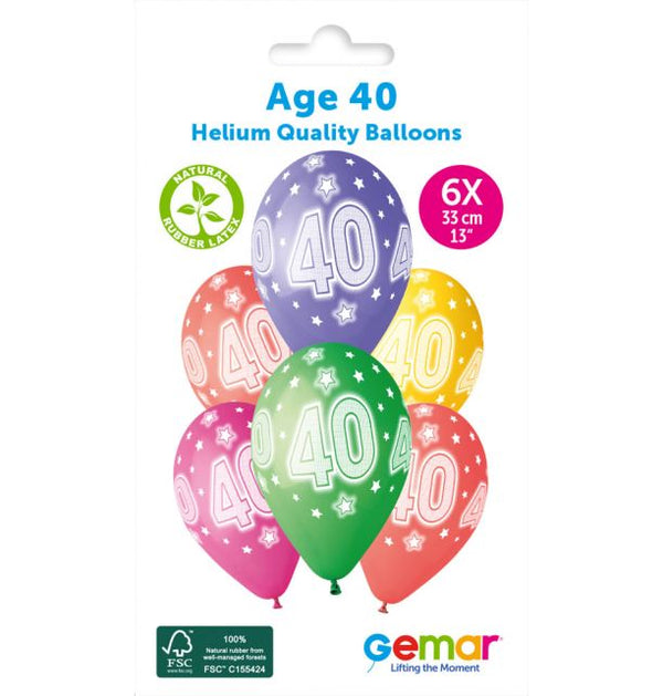 Gemar 13" Cosmic Stars Age 40 #872 GS120 6pcs Round Balloon