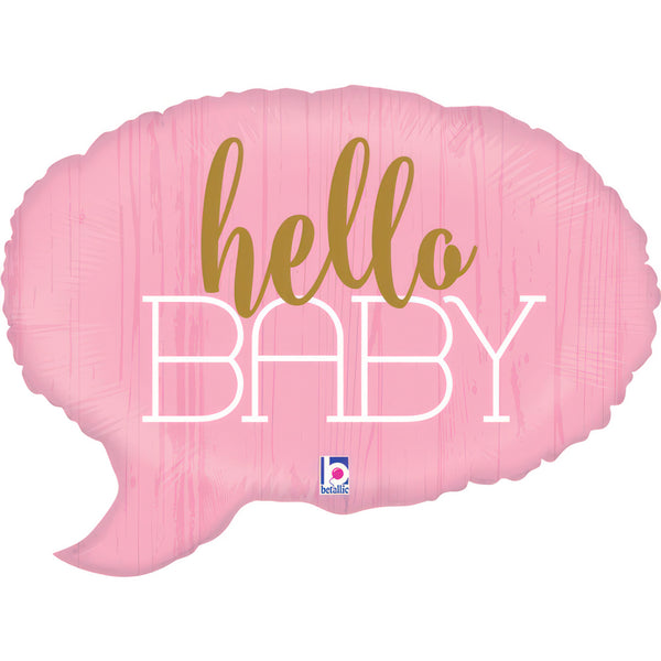 24 inch Pink Hello Baby Speech Bubble Foil Balloon Packaged