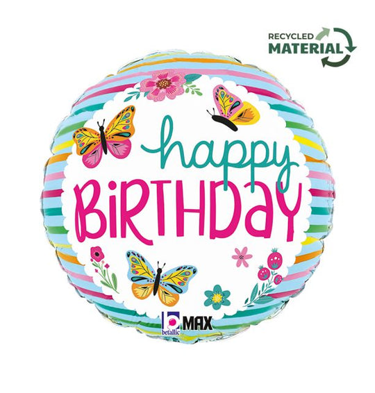 18" BDay Colorful Butterflies Foil Balloon Packaged