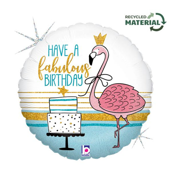 18" Fabulous Flamingo B-Day Foil Balloon Packaged