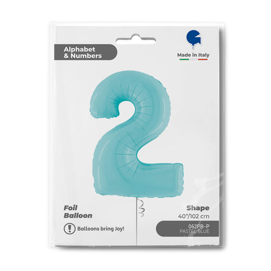 Number 2 Pastel Blue 40" Foil Balloon Packaged