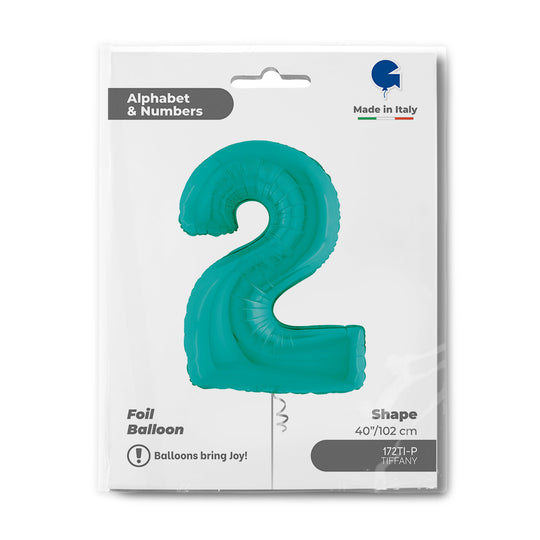 Number 2 Tiffany 40" Foil Balloon Packaged