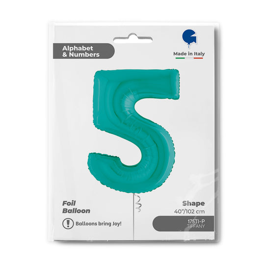 Number 5 Tiffany 40" Foil Balloon Packaged