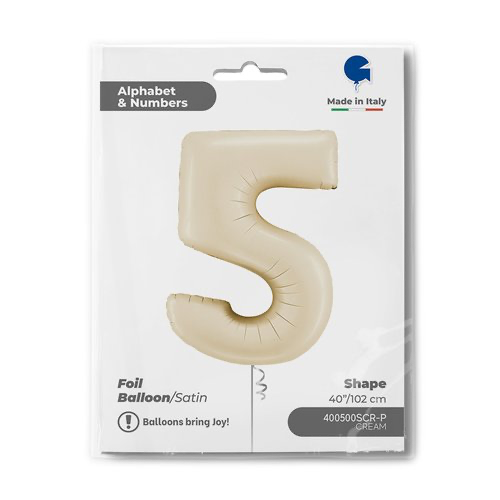 Number 5 Satin Cream 40" Foil Balloon Packaged