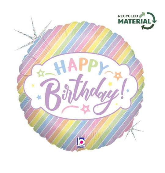 18" Pastel Birthday Stripes Foil Balloon Packaged