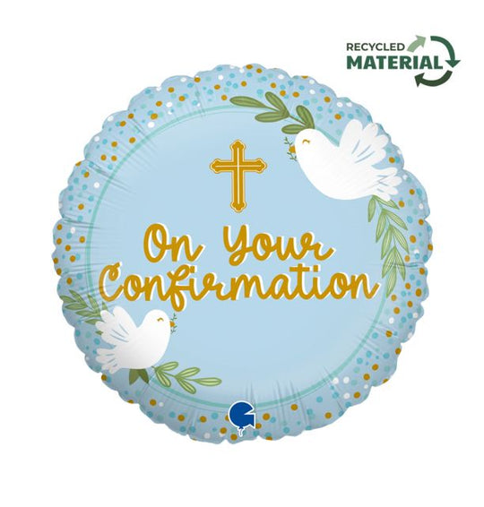 18" On Your Confirmation Blue Foil Balloon Packaged