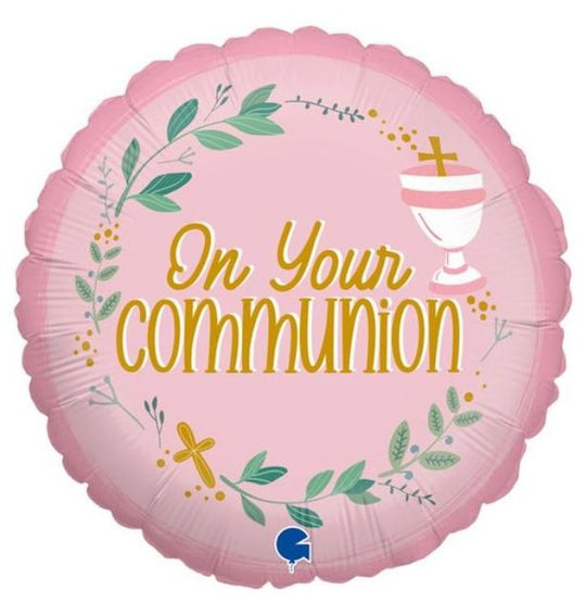 18" On Your Confirmation Pink Foil Balloon Packaged