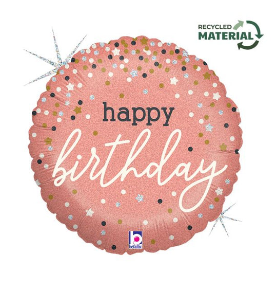 18" Rose Gold Confetti B-Day Foil Balloon Packaged