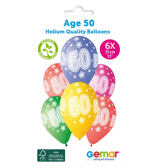 Gemar 13" Cosmic Stars Age 50 #873 GS120 6pcs Round Balloon