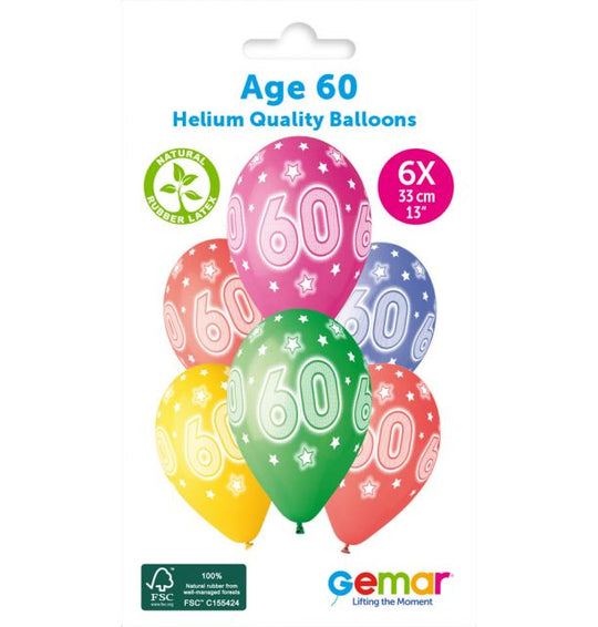 Gemar 13" Cosmic Stars Age 60 #931 GS120 6pcs Round Balloon