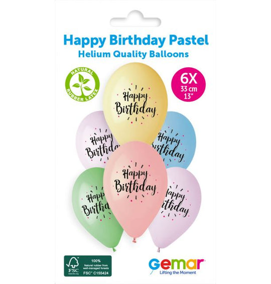 Vendor: Gemar Gemar 13" Happy Birthday Pastel #888 GS120 6pcs Round Balloon More Information Size 33 cm /13" Pack Pack of 6Regular price £2.99